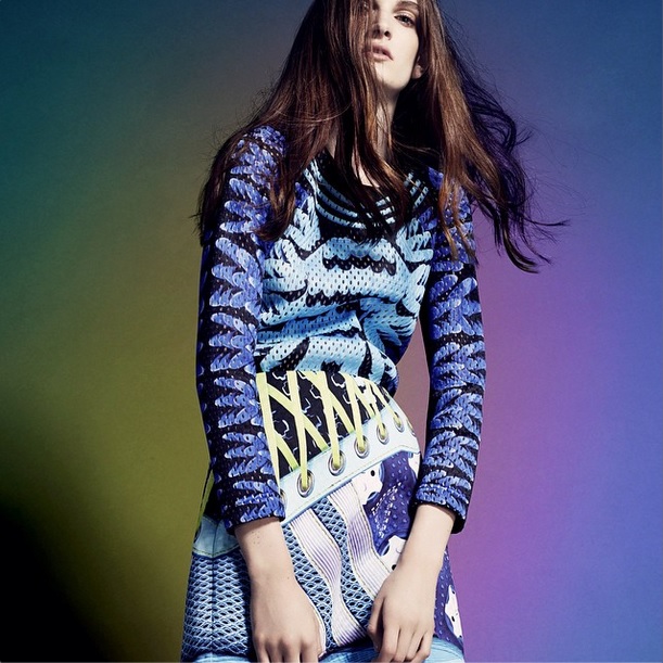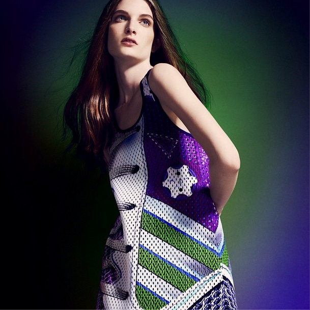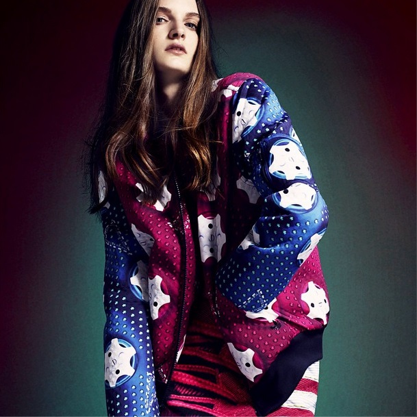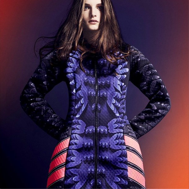 Pour ses modèles, Mary Katrantzou a puisé dans les archives d’Adidas pour extraire des images, des formes. Il ne s’agit pas pour la créatrice de recréer à l’identique des symboles mais d’en tirer des détails et de les agrandir. Quand le micro devient macro… Autre attention apportée par Mary Katrantzou, l’utilisation de matières très pointues. Ainsi on retrouvera des mailles et du néoprène, très représentatifs des collections féminines actuelles.