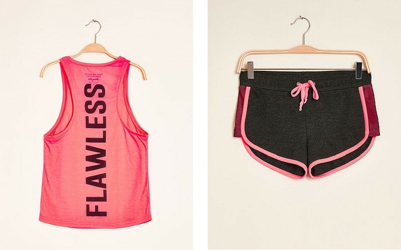 Tout ce développement DONC pour vous dire que je suis conquise par la nouvelle collection fitness. Le trio de couleurs : noir, gris et corail fonctionne à merveille. Niveau coupes, rien qui révolutionne le marché du sportswear mais il faut quand même souligner le choix qui nous est donné pour les hauts. Le dos de la brassière est joliment travaillé et j’ai un coup de cœur pour les tee-shirts en résille qui suggèrent sans trop en faire! 😉 Idéal pour cet été!
