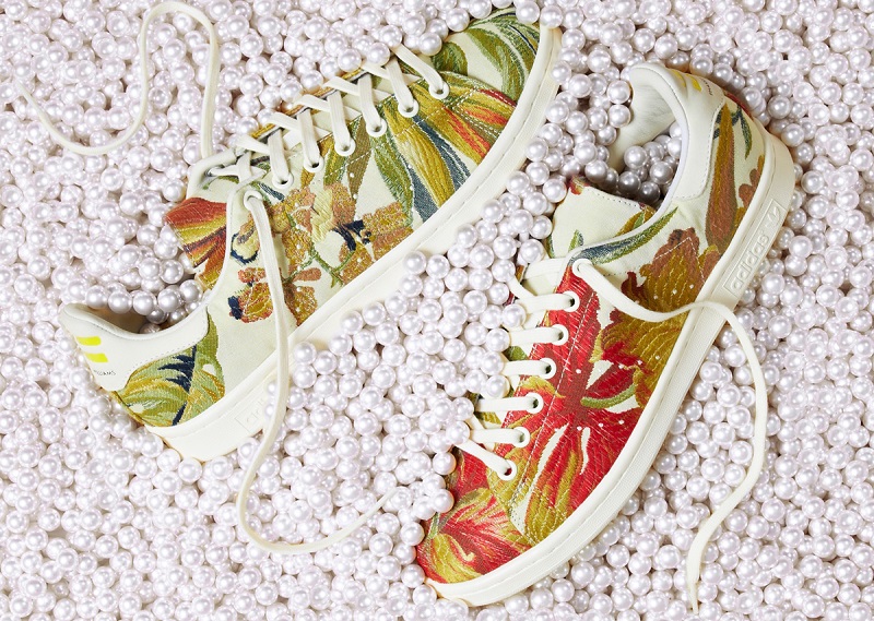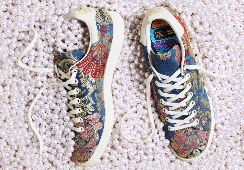Pour ce nouveau pack intitulé Jacquard Pack, Pharrell Williams s’est inspiré de tissus floraux aperçus sur le marché Saint Pierre, près du Sacré-Cœur à Montmartre. Le résultat de cette visite parisienne est plutôt séduisant! Au programme, des imprimés aux accents vintage qui donnent au Superstar LIL’ Jacket et à la Stan Smith toutes ses lettres de noblesse. 🙂 À noter que le Jacquard Pack est disponible en 2 coloris : coloris turquoise avec broderies rose et doré et coloris crème avec broderies rouge, vert et doré